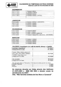 Programe suas férias de verão na colônia. Veja a seguir o calendário e instruções de como serão as reservas, para a proxima temporada. A direção. newimageBaixar